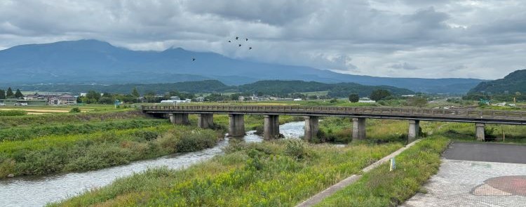 月光川の川沿いをうろついていると思われます。(左が吉出、右端の約1キロ先の建物が遊佐中)