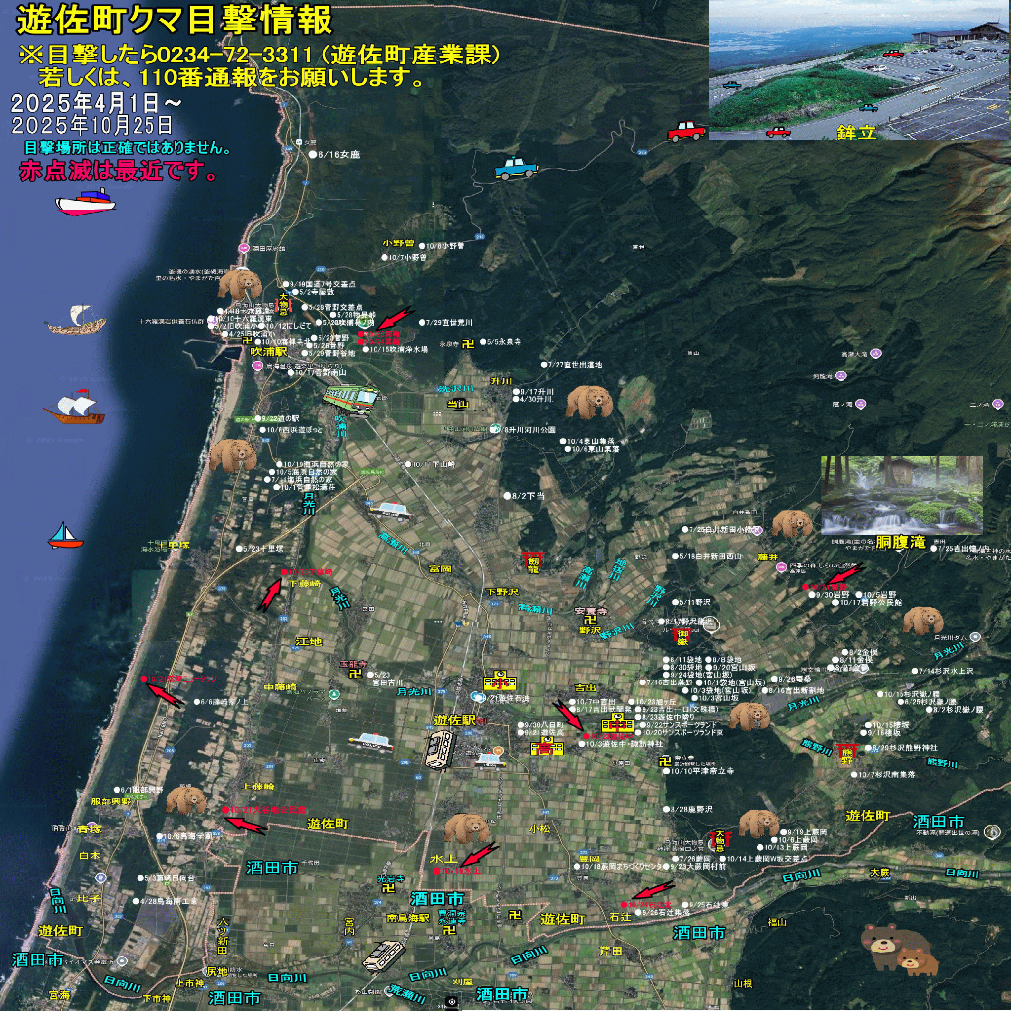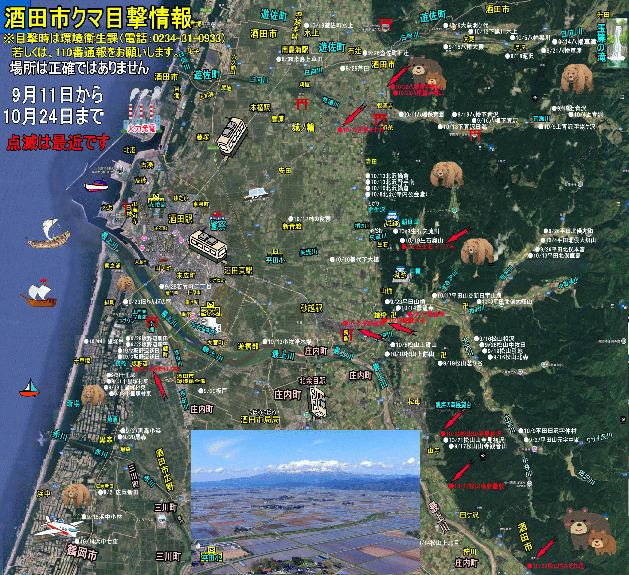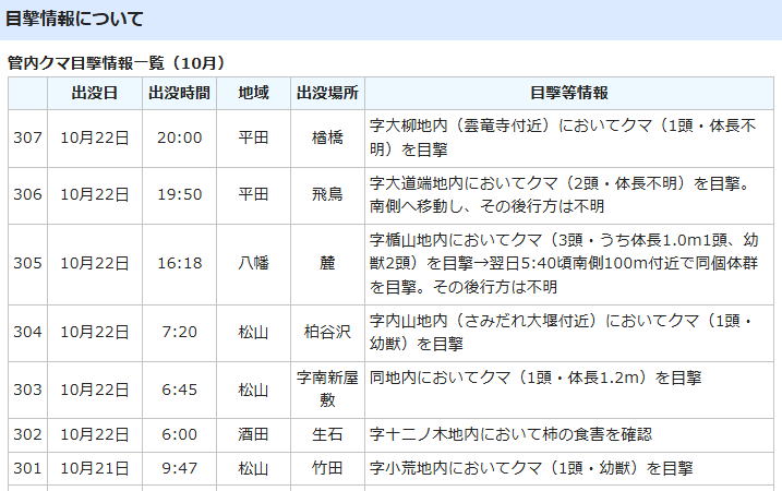 酒田市内のクマ目撃情報 |