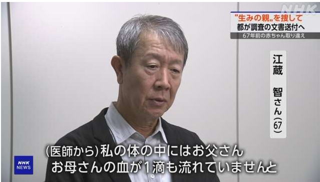 ■東京都は、裁判の結果を受けてようやく重い腰を上げて動き出しています。江蔵さんは、「ルーツを知る権利は当たり前にあるはず。想像もつかない違った人生があっただろう」、「実の親はどんな人なのか、兄弟や親戚から話を聞きたい。出自を知ることで自分の心は洗われる」と、そして、「相手の方が名乗り出ることを拒んでいるなら、遠くから見るだけでも見たい」、「育ててくれた母親のためにも真実の子を一目でも見せてあげたいとも思っています。」と語っています。裁判結果を受けて東京都は調査を開始したところ、江蔵智 ( さとし ) さん(67)と同じ1958年(昭和33年)4月に同区で生まれたのは230人で、男性は113人だと判明したと調査の基本的な数字を公表しています。67年を経過し、転出入も多い地域でしょうが、都は本気を出して調査に必要な人員を専従させて、早期にそれぞれの家族を特定して欲しいものです。