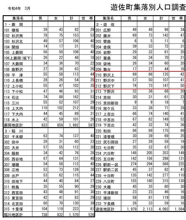 また「広報ゆざ」の訃報欄の人数の多さに比べ、生まれた赤ちゃんの掲載の少なさに驚きます。