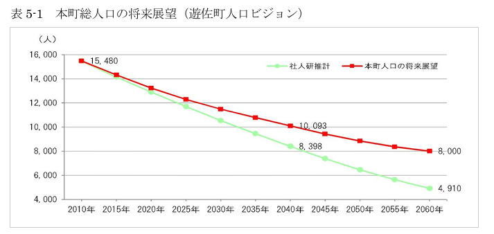 2020(令和2)年時点の遊佐町人口ビジョンです。30年後はほぼ半減です。